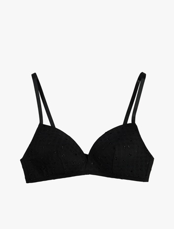Boncuk Detaylı Rahat Kalıp Tüllü Balensiz Dolgusuz Sütyen Sepete Ekle
