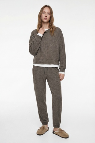 Rahat Kalıp Uzun Kollu Bisiklet Yaka Triko Pijama Üstü Sepete Ekle