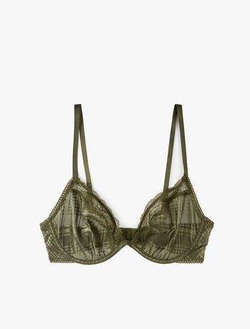 Dantel Detaylı Rahat Kalıp Ekose Desenli Dolgusuz Balenli Sütyen