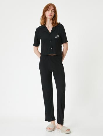 Düğmeli Pijama Takımı Kısa Kollu Nakışlı