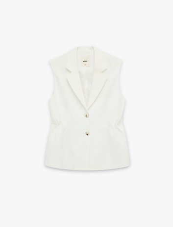 Krep Kumaş Büzgü Detaylı Uzun Blazer Yelek