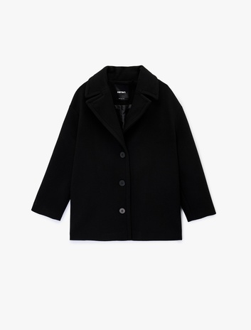 Düğmeli Dik Yaka Uzun Kollu Oversize Kaşe Kaban Sepete Ekle