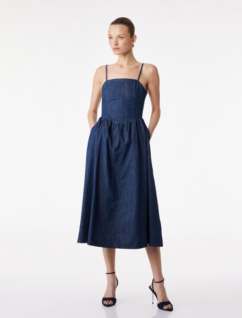 Regular Fit Cepli Askılı Midi Denim Elbise