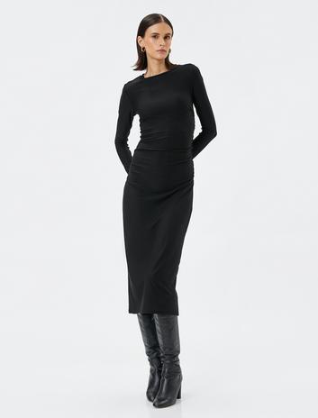 Midi Kalem Elbise Uzun Kollu Bisiklet Yaka Slim Fit