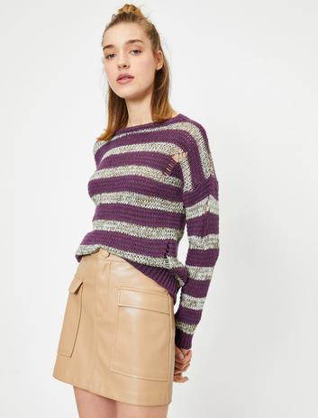 Triko Çizgili Kayık Yaka Uzun Kollu Kazak Sepete Ekle