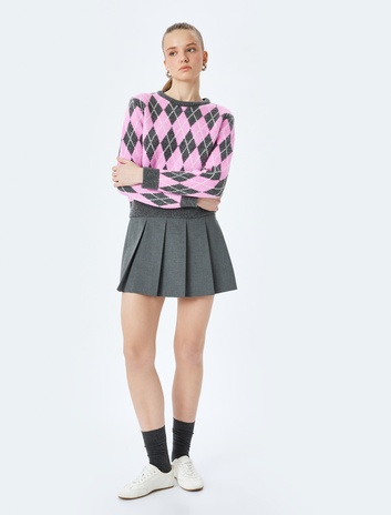 Uzun Kollu Bisiklet Yaka Baklava Desenli Triko Kazak