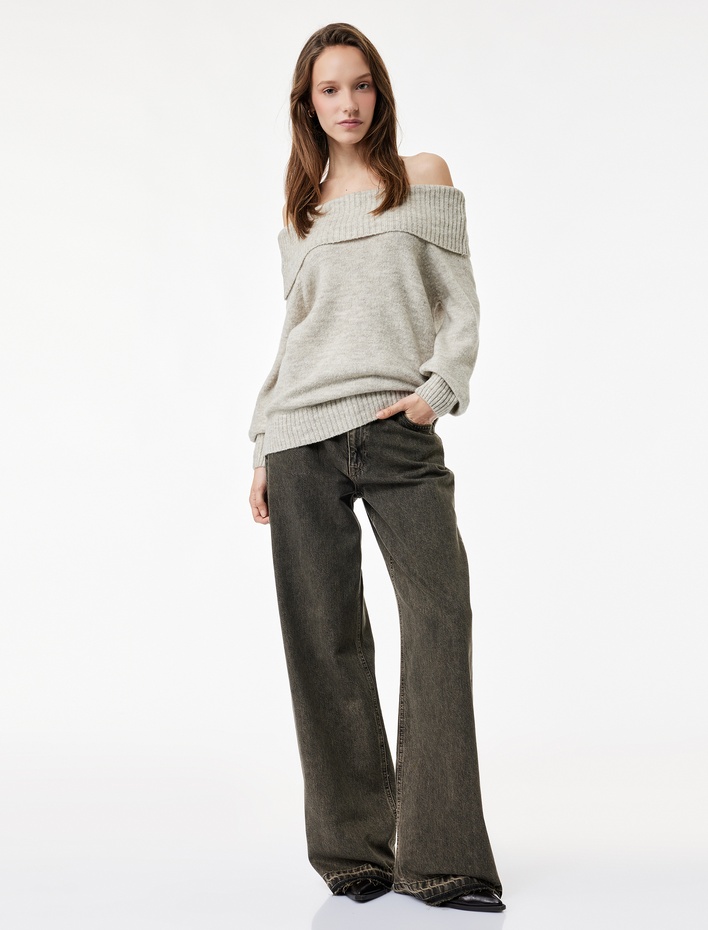 Madonna Yaka Omzu Açık Triko Kazak