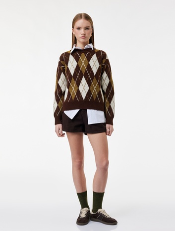 Koton X Melis Ağazat - Uzun Kollu Bisiklet Yaka Baklava Desenli Triko Kazak Sepete Ekle