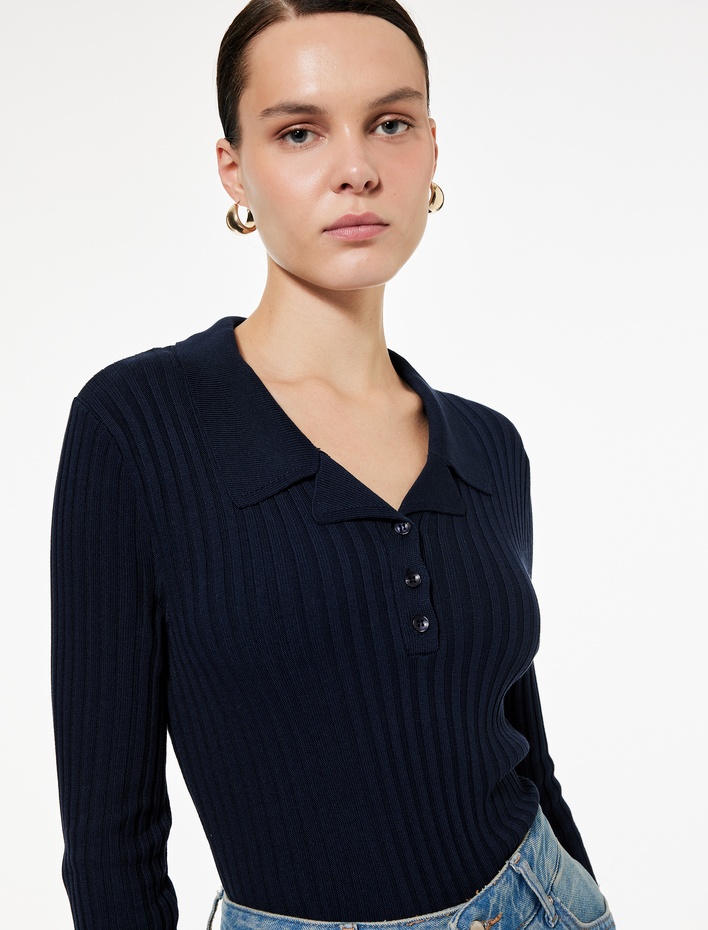 Yarım Düğme Detaylı Uzun Kollu Polo Yaka Triko Kazak
