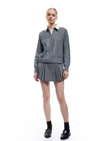 Uzun Kollu Gömlek Yaka Saç Örgü Dokulu Triko Kazak Sepete Ekle