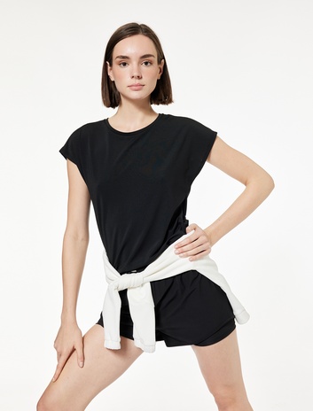 Rahat Kalıp Modal Kumaş Bisiklet Yaka Spor Sıfır Kol Tişört