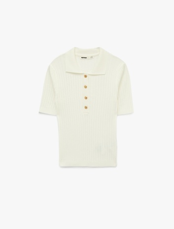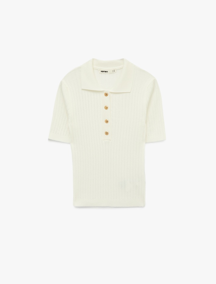 Düğmeli Bisiklet Çift Yaka Kısa Kollu Viskon Triko Kazak