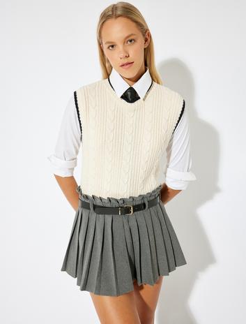 Dokulu Bisiklet Yaka Kolsuz Saç Örgü Süveter Sepete Ekle