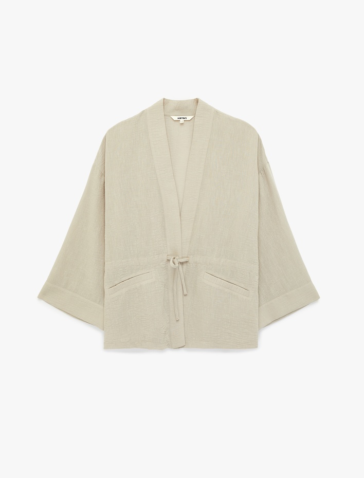 Kimono, Japon geleneksel giyim tarzının modern yorumlarından biridir ve kadınlara hem şıklığı hem de rahatlığı bir arada sunar. Genelde mevsim geçişlerinde ve yaz aylarında tercih edilen kimono, günlük giyimde de plaj stilinde de kombinlere dahil oluyor. Son yıllarda oldukça popüler olan kimono takım modellerini birlikte satın alabileceğiniz gibi Koton kadın giyim koleksiyonundan kendi takımlarınızı da oluşturabilirsiniz.