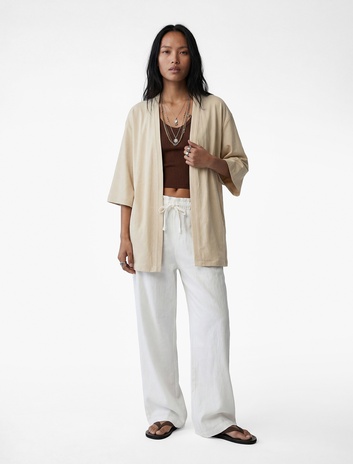 Kadın kimono, şıklığı, zarafeti ve geleneksel Japon estetiğini bir araya getiren eşsiz bir giyim parçasıdır. Zengin desenleri ve detaylarıyla kimono, her kadının gardırobunda bulunması gereken özel parçalardandır. Özel günlerde veya günlük giyimde kullanabileceğiniz kimono, kombinleme seçenekleriyle size farklı tarzlar sunar. Uzun kimono, kısa kimono, renkli kimono ve kroşe kimono gibi birbirinden şık alternatiflerin yer aldığı Koton kimono koleksiyonunu hemen keşfedin!