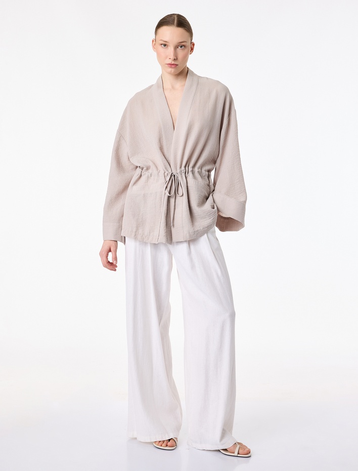 Kadın kimono, şıklığı, zarafeti ve geleneksel Japon estetiğini bir araya getiren eşsiz bir giyim parçasıdır. Zengin desenleri ve detaylarıyla kimono, her kadının gardırobunda bulunması gereken özel parçalardandır. Özel günlerde veya günlük giyimde kullanabileceğiniz kimono, kombinleme seçenekleriyle size farklı tarzlar sunar. Uzun kimono, kısa kimono, renkli kimono ve kroşe kimono gibi birbirinden şık alternatiflerin yer aldığı Koton kimono koleksiyonunu hemen keşfedin!