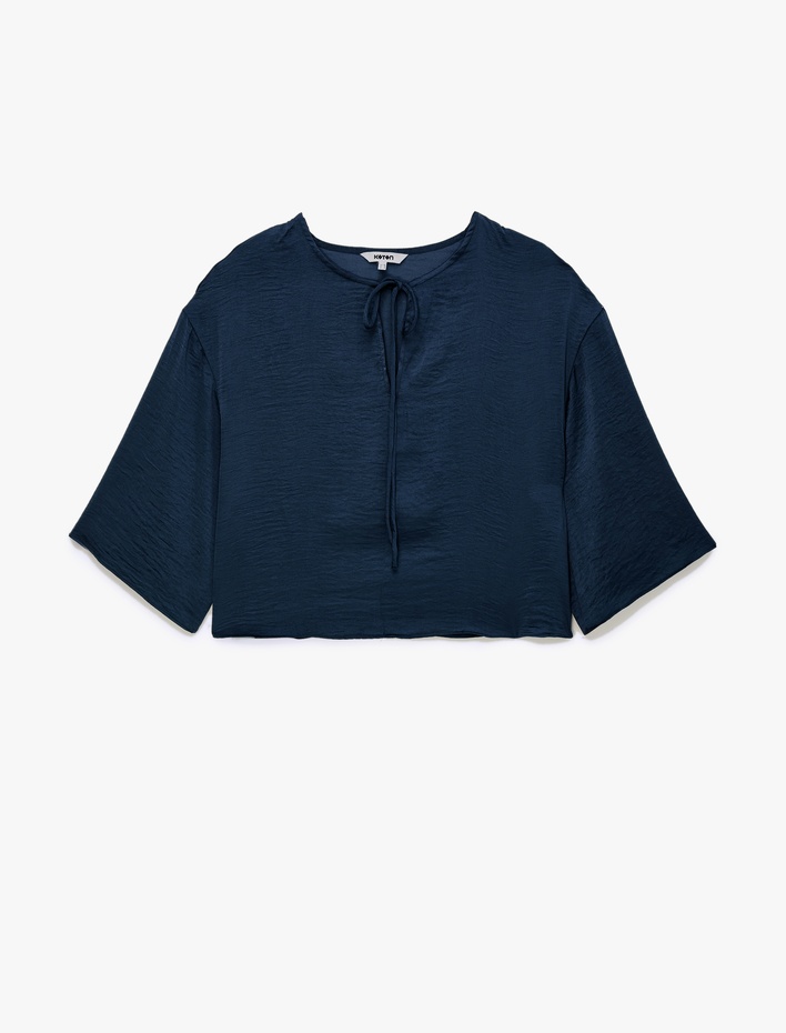 Aerobin Kumaş Rahat Kalıp Bağlamalı Yuvarlak Yaka Kısa Kollu Saten Bluz Sepete Ekle