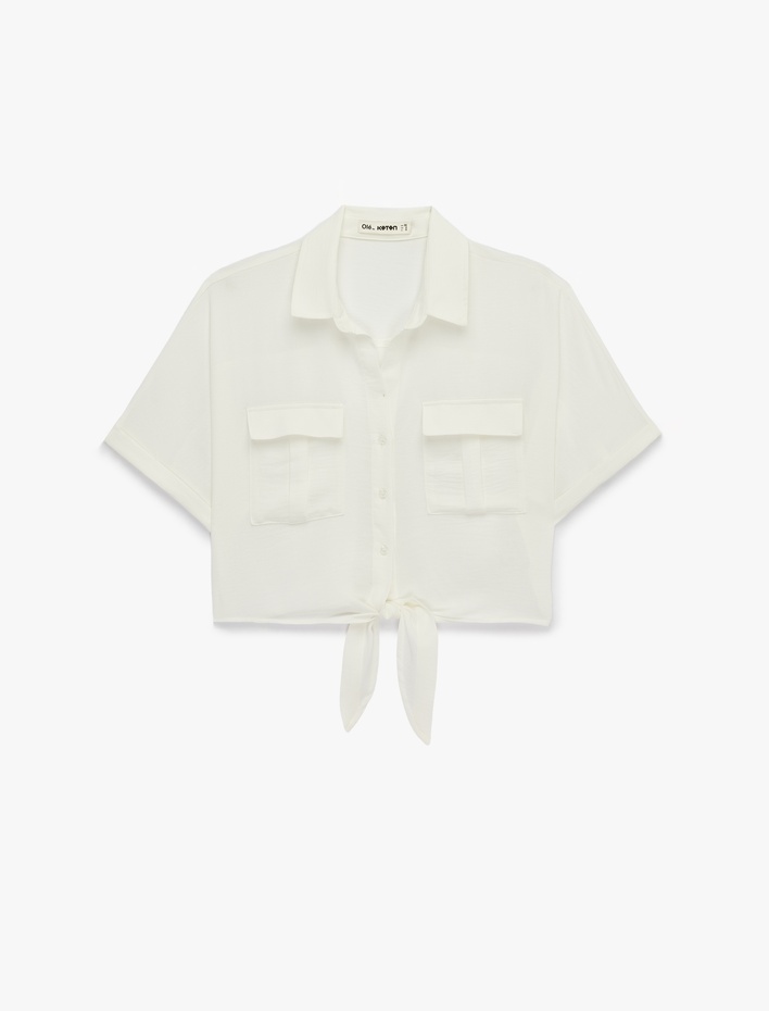Aerobin Kumaş Rahat Kalıp Kısa Kollu Bağlama Detaylı Cepli Yazlık Gömlek Sepete Ekle