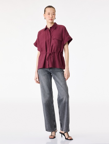 Modal Kumaş Kısa Kollu Cepli Belden Bağlama Detaylı Gömlek Sepete Ekle