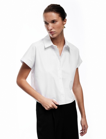 Crop Poplin Bluz Kolsuz Büzgülü Polo Yaka Sepete Ekle