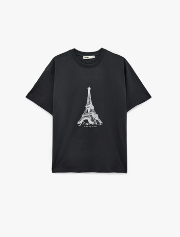 Pamuklu Kısa Kollu Bisiklet Yaka Eyfel Kulesi Baskılı Oversize Tişört Sepete Ekle