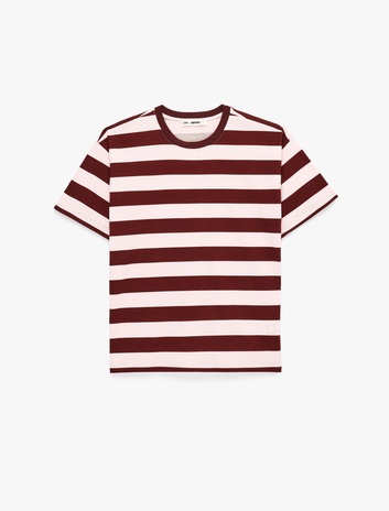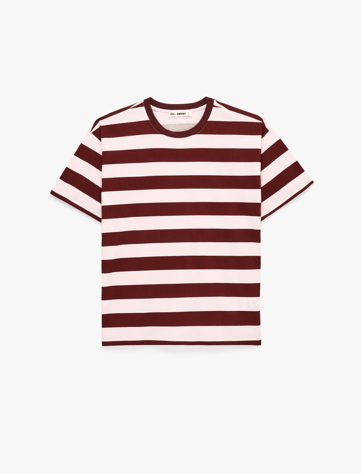 Kısa Kollu Bisiklet Yaka Pamuklu Çizgili Tişört Sepete Ekle