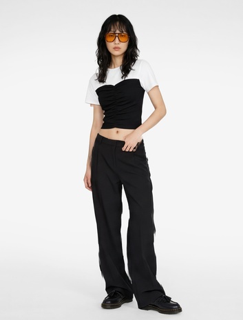 Pamuklu Kısa Kollu Bisiklet Yaka Ön Yırtmaç Detaylı Tişört Sepete Ekle