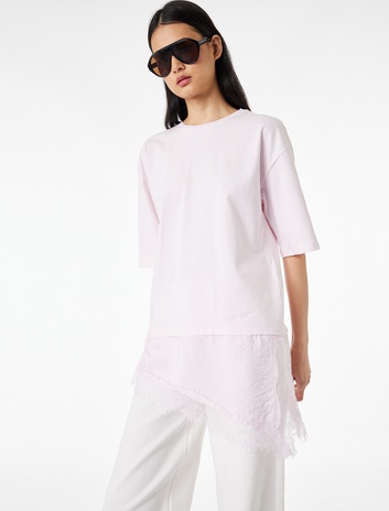 Regular Fit Kısa Kollu Bisiklet Yaka Asimetrik Dantel Detaylı Tişört Sepete Ekle