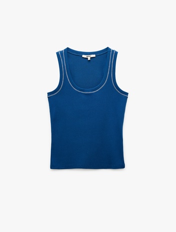 Pamuklu Kontrast Dikiş Detaylı Slim Fit U Yaka Kaşkorse Fitilli Kolsuz Tişört