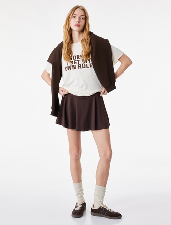 Rahat Kalıp Kısa Kollu Bisiklet Yaka Slogan Baskılı Tişört Sepete Ekle