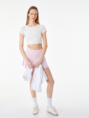 Slim Fit Kısa Kollu Bisiklet Yaka Bağlama Detaylı Crop Spor Tişört Sepete Ekle
