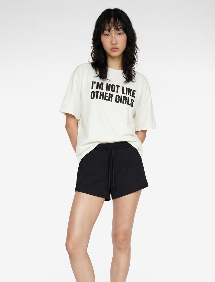 Pamuklu Yarım Kollu Bisiklet Yaka Baskılı Yırtmaçlı Oversize Spor Tişört