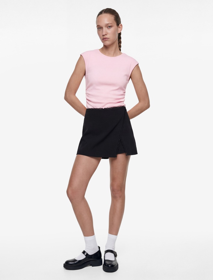 Pamuklu Drape Detaylı Kısa Kollu Bisiklet Yaka Tişört