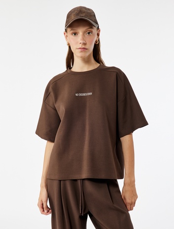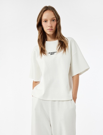 Kısa Kollu Bisiklet Yaka Nakışlı Oversize Tişört