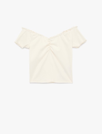 { "id": "8684846488424", "name": "Slim Fit Büzgülü Kayık V Yaka Kısa Kollu Tişört", "taxonomy":["OLE","OLE","TEENAGE","JERSEY","TSHIRT SS"], "currency": "TRY", "unit_price": 399.99 , "unit_sale_price": 399.99 , "url": "https://www.koton.com/slim-fit-buzgulu-kayik-v-yaka-kisa-kollu-tisort-ekru-4095534-1/", "stock": 13, "color": "EKRU", "size": "XL", "product_image_url": "https://ktnimg2.mncdn.com/products/2026/01/13/3179104/dfe58ff4-a0cd-4e69-8fe9-4cc52fbd6018_size870x1142.jpg" }