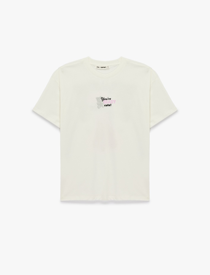 Rahat Kalıp Kısa Kollu Bisiklet Yaka Baskılı Tişört Sepete Ekle