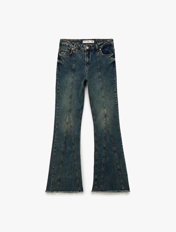 Koton X Sibil Çetinkaya - Dar Kesim Cep Detaylı İspanyol Paça Jean Pantolon - Flare Jeans Sepete Ekle