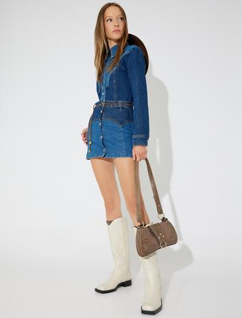 Kemer Detaylı A Kesim Mini Kot Etek Sepete Ekle