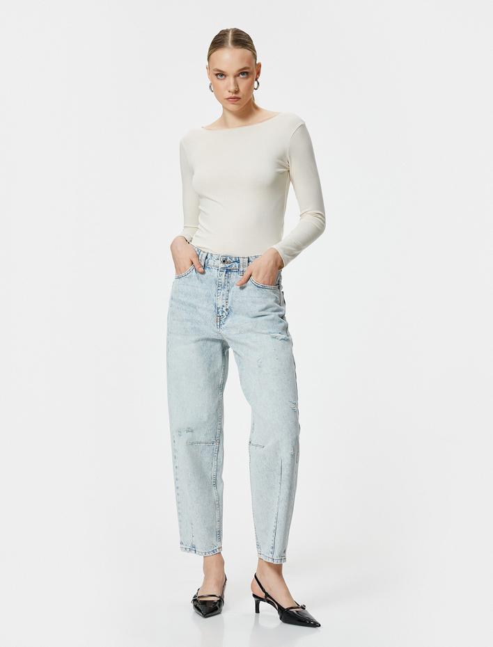 Mom Fit Kot Pantolon Rahat Kesim Hafif Dar Paça - Mom Jean Sepete Ekle