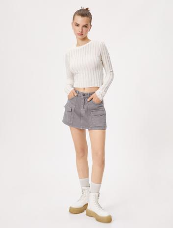 Mini Kot Şort Zımba Detaylı Cepli