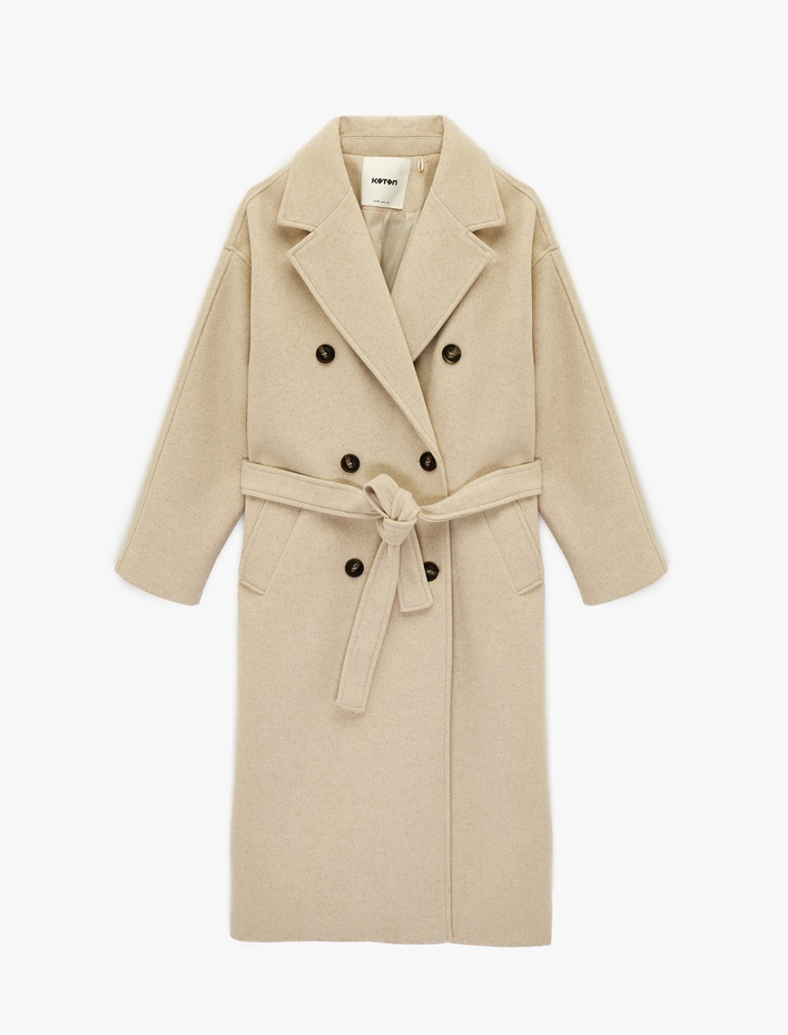 Trenç Kaban Kaşe Kruvaze Düğmeli Kemerli Cepli Uzun Kollu Sepete Ekle