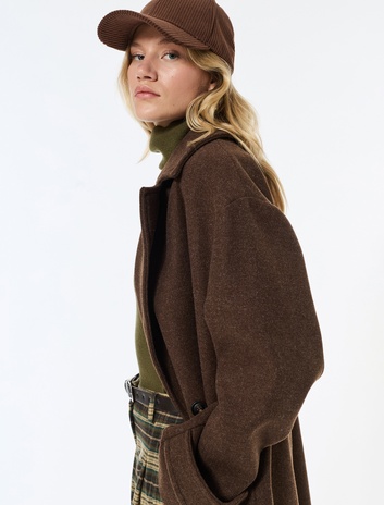 Oversize Kaban Kaşe Astarlı Düğmeli Kruvaze Uzun Kollu Sepete Ekle
