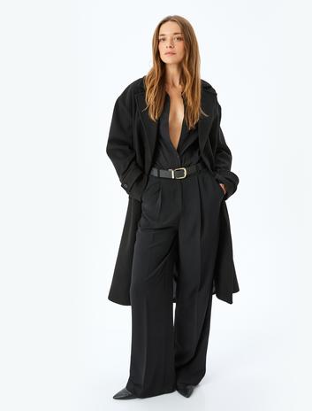 Cepli Düğmeli Kruvaze Uzun Oversize Kaşe Kaban