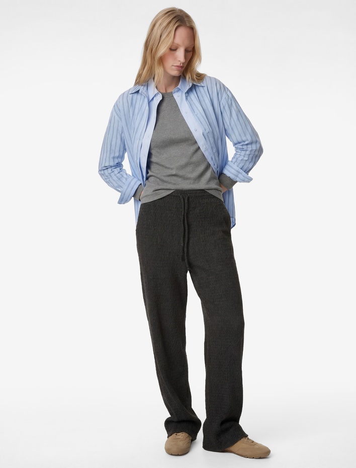 Bürümcük Kumaş Beli Bağcıklı Geniş Paça Pantolon Sepete Ekle