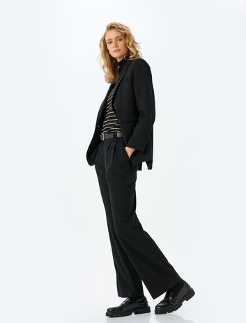 Koton X Şahika Ercümen - Cepli Pile Detaylı Geniş Paça Kumaş Pantolon