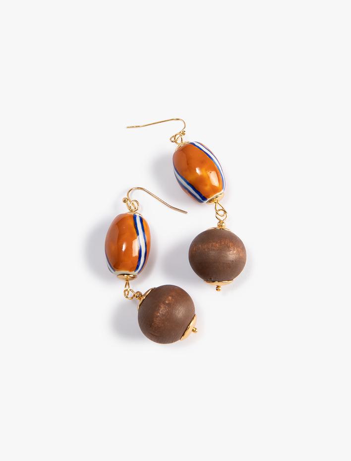 Kadın Küpe Doğal Dokulu Boncuklu Sallantılı