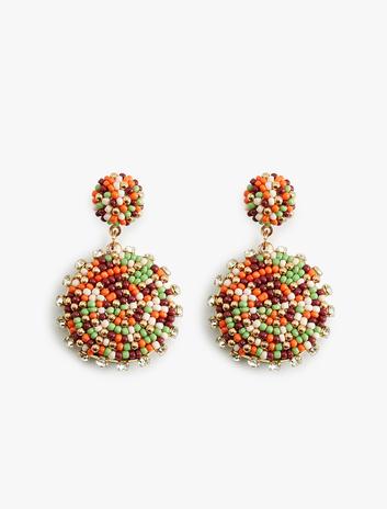 Çok Renkli Boncuklu Sallantılı Geometrik Küpe Sepete Ekle