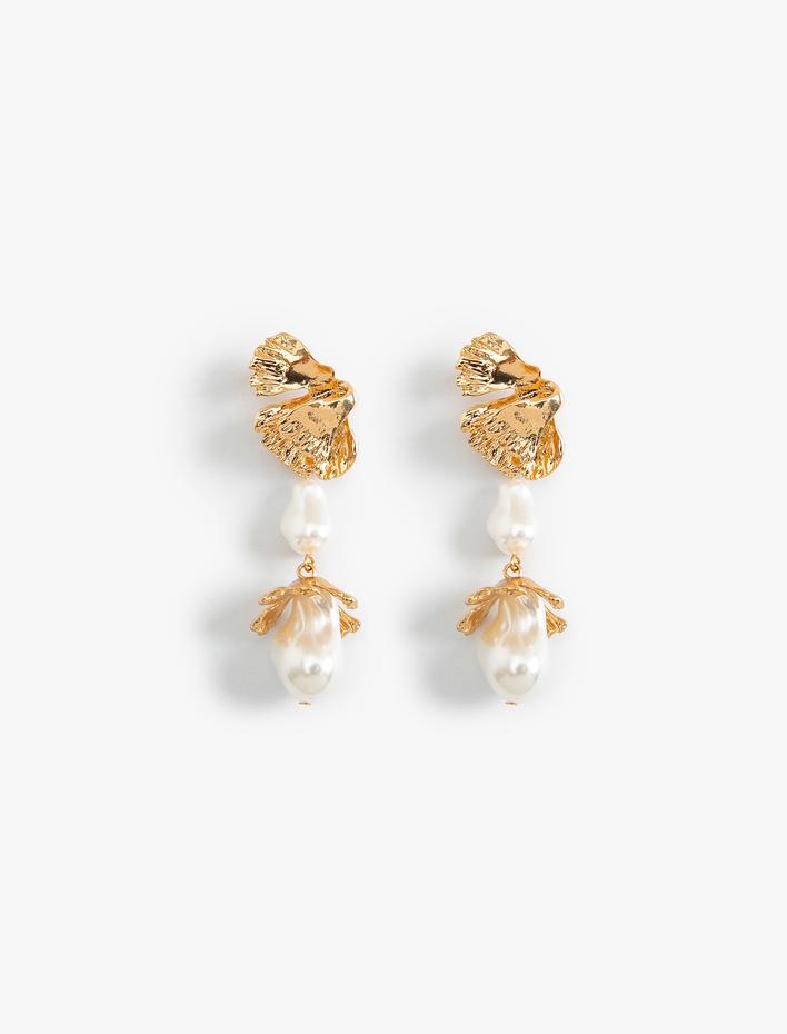 Kadın Bridal Küpe Çiçekli İnci Detaylı Uzun