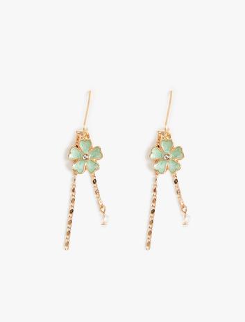 Kadın Çiçekli Küpe Zincir Detaylı Sallantılı