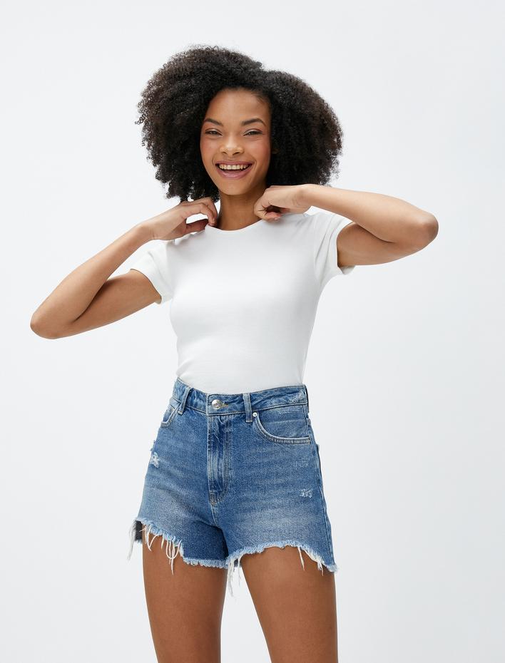Basic Tişört Kısa Kollu Bisiklet Yaka Fitilli Pamuklu Sepete Ekle